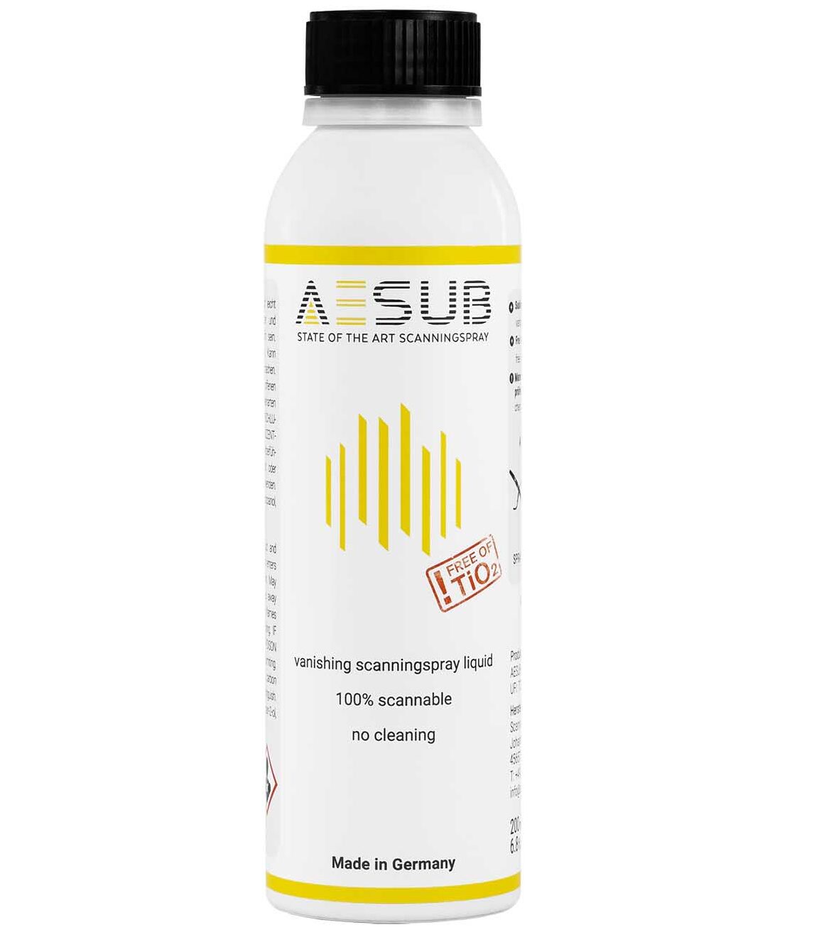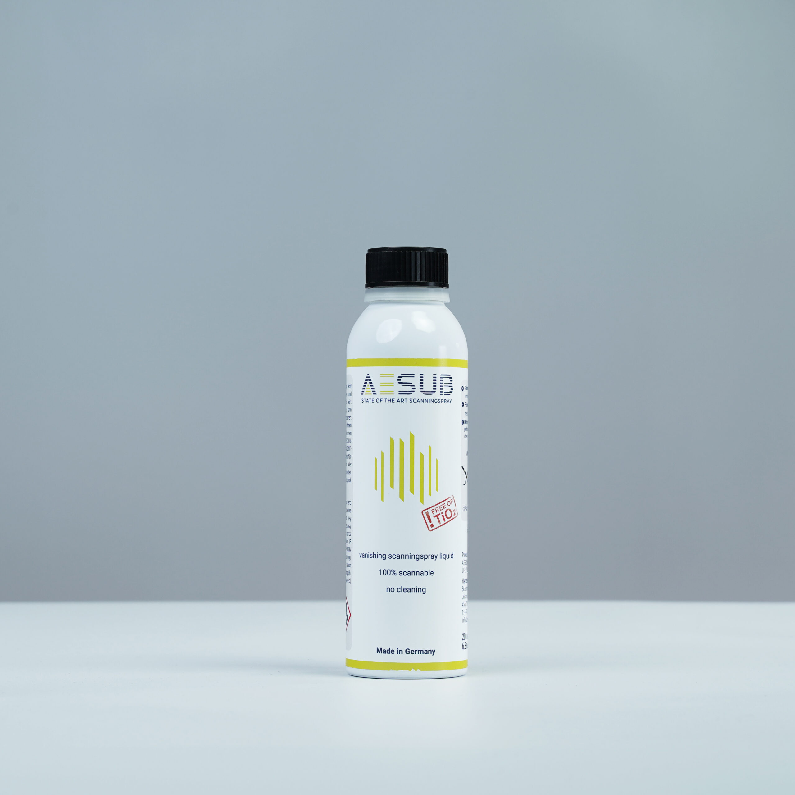 AESUB yellow ist eine selbstverflüchtigende Airbrush-Lösung für Anwendungen mit höchsten Genauigkeitsanforderungen. Die extrem dünne, pigmentfreie Beschichtung ermöglicht präzise 3D-Scans mit minimalem Schichteinfluss und verschwindet nach dem Scan vollständig. Besonders geeignet für feine Strukturen und detailkritische Messaufgaben.